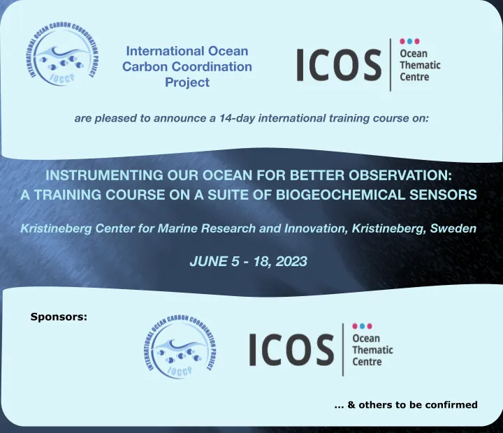 We are thrilled to announce that IOCCP and ICOS OTC (Integrated Carbon Observation System Ocean Thematic Centre) are organizing a 14-day international training course on "Instrumenting our ocean for better observation: a training course on a suite of biogeochemical sensors." The course will be held on June 5-18, 2023 at the Kristineberg Center for Marine Research and Innovation, in Kristineberg, Sweden. Application process will open in mid-December 2022. You can read about the past editions of the course from our website here: www.ioccp.org/index.php/training