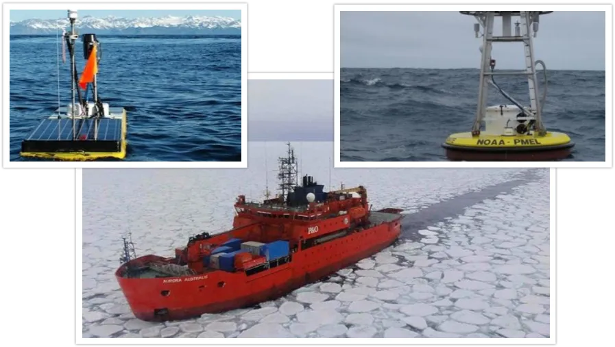 Determination of surface water partial pressure/fugacity of carbon dioxide (pCO2/fCO2) is of great interest as it provides a means to determine flux of CO2 between the ocean and atmospheric and offers the opportunity to measure changes in surface water CO2 levels in support of ocean acidification research. Surface water CO2 levels are steadily increasing due to increasing atmospheric CO2 levels from anthropogenic sources, primarily burning of fossil fuels, and resulting increases in air-sea CO2 fluxes. However, the ocean CO2 sinks and surface water CO2 increases are not homogeneous in time of space. On a climatological scale the lower latitude oceans emit CO2 (CO2 sources) and higher latitude oceans sequester CO2 (CO2 sinks). Patterns change by season and are modulated by biological and physical processes. Multi-year anomalies are becoming apparent in the observational databases often linked to large-scale climate reorganizations such as the ENSO.